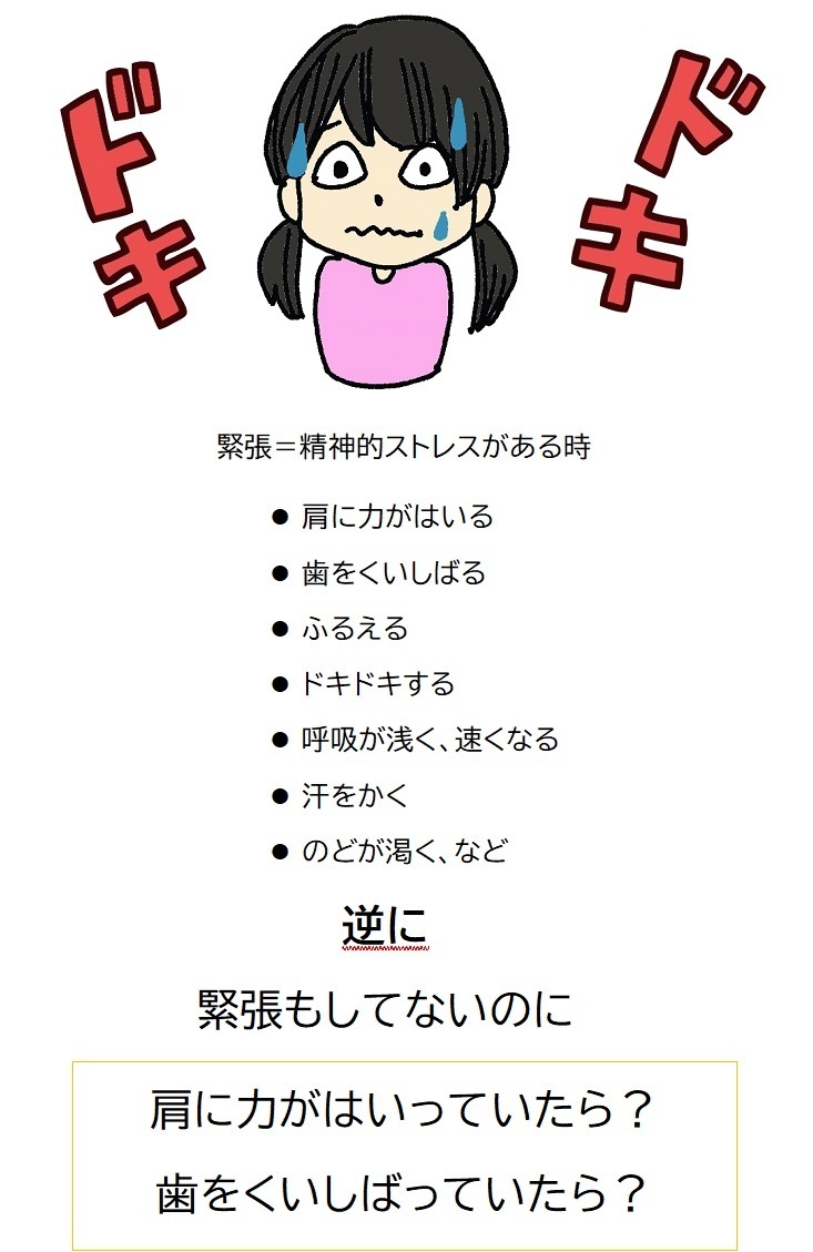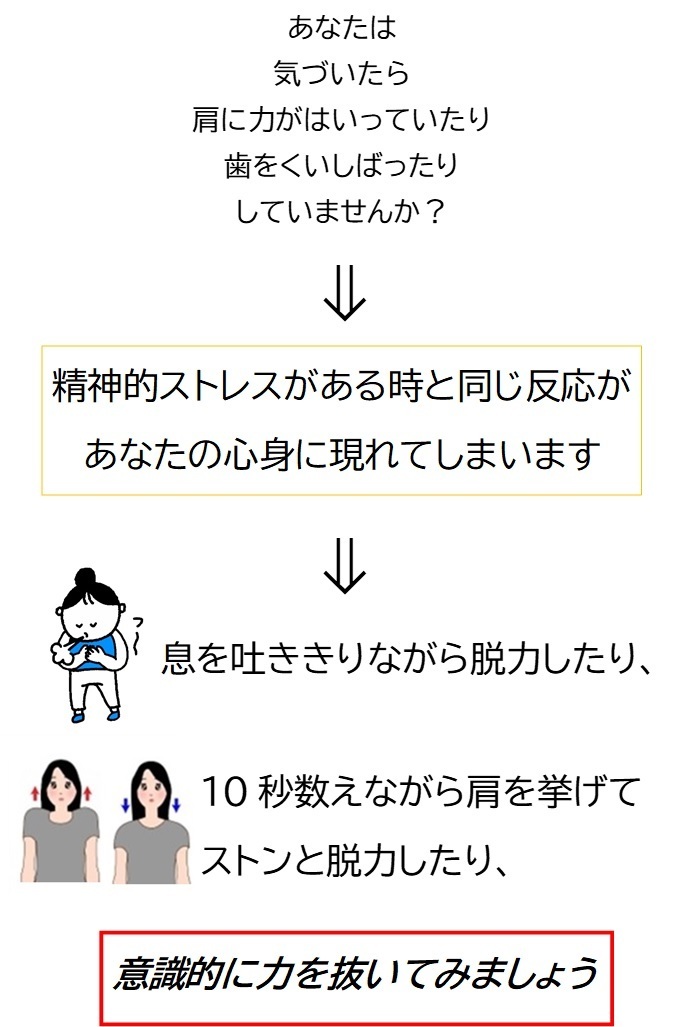 カラダに力が入ると、ストレスがなくてもストレス状態と同じような反応が起きてしまいますよ。